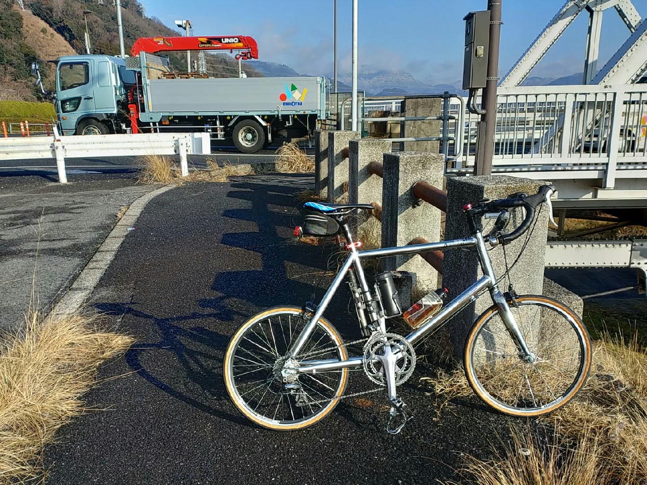 布、飯室、今井田、権現山、尾長山ヒルクライム等、70km、ステンレス953ロードで走りました。