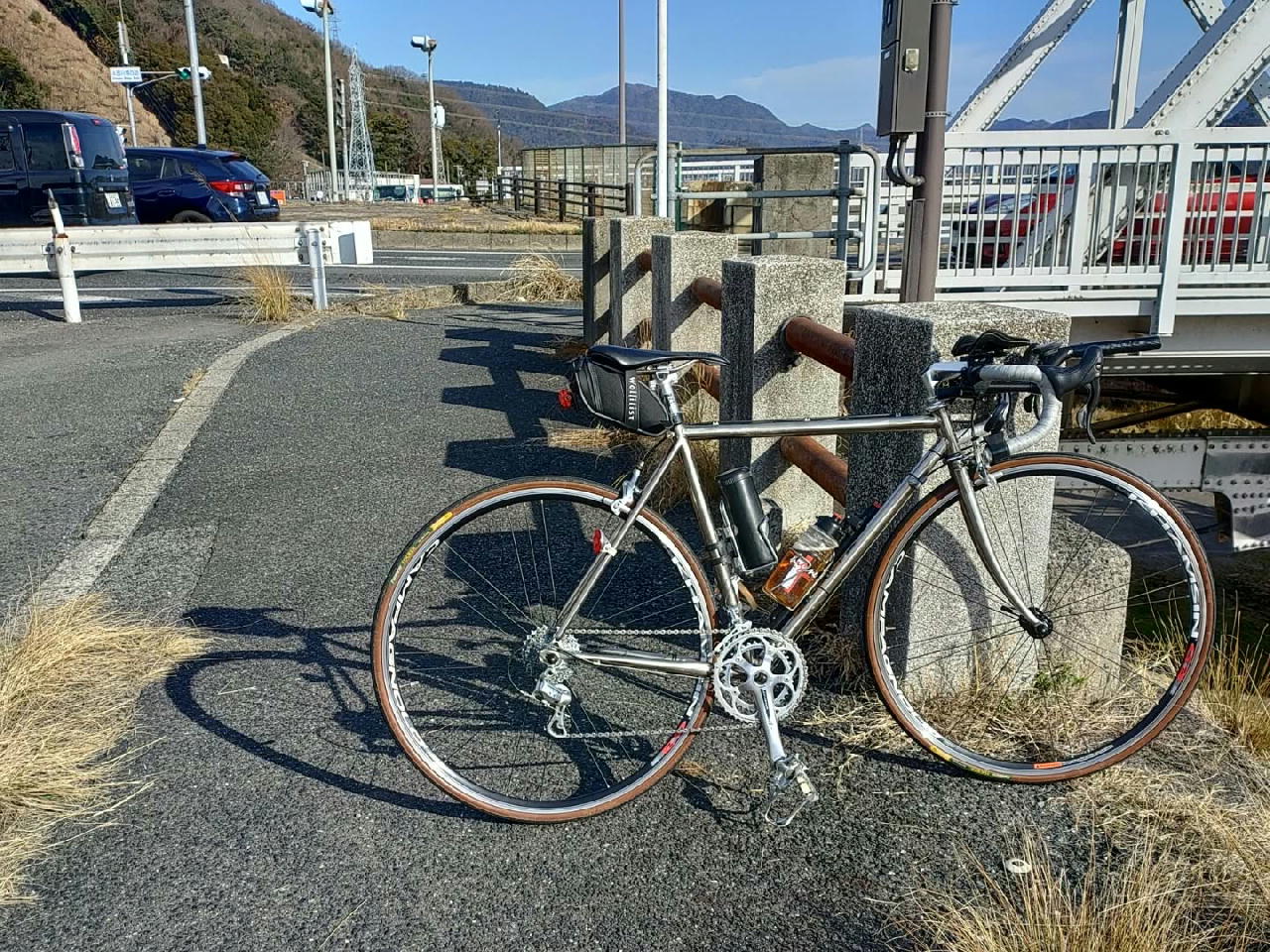 布、飯室、今井田、権現山、尾長山ヒルクライム等、70km、純チタンロードで走りました。