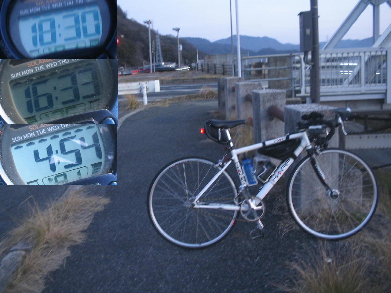 日曜一周回、往路18分30秒、復路16分33秒、3kmTT4分54秒、ヒルクライム4分54秒