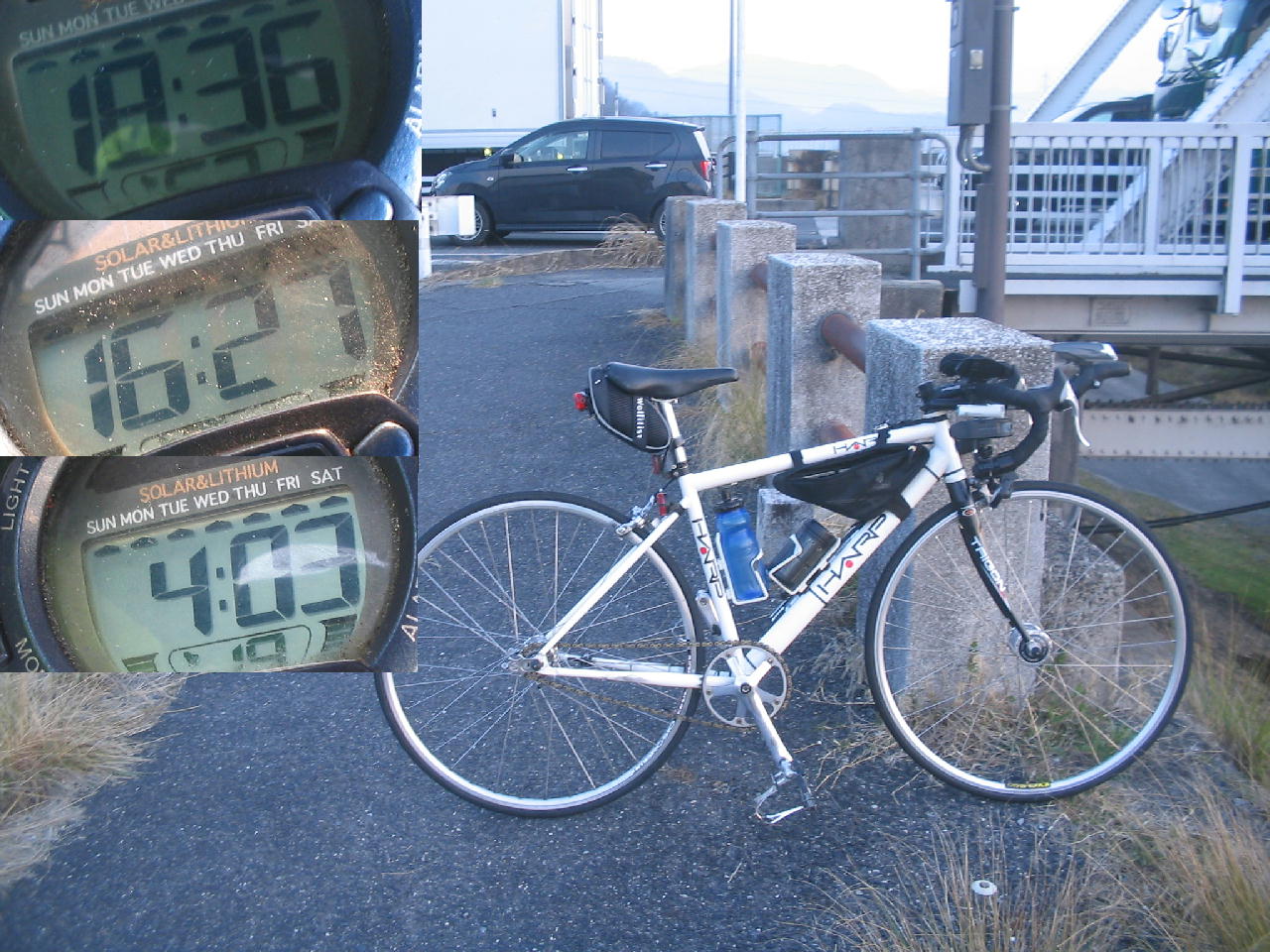 春分の日、一周回、往路18分36秒、復路16分27秒、3kmTT4分23秒、ヒルクライム4分3秒。