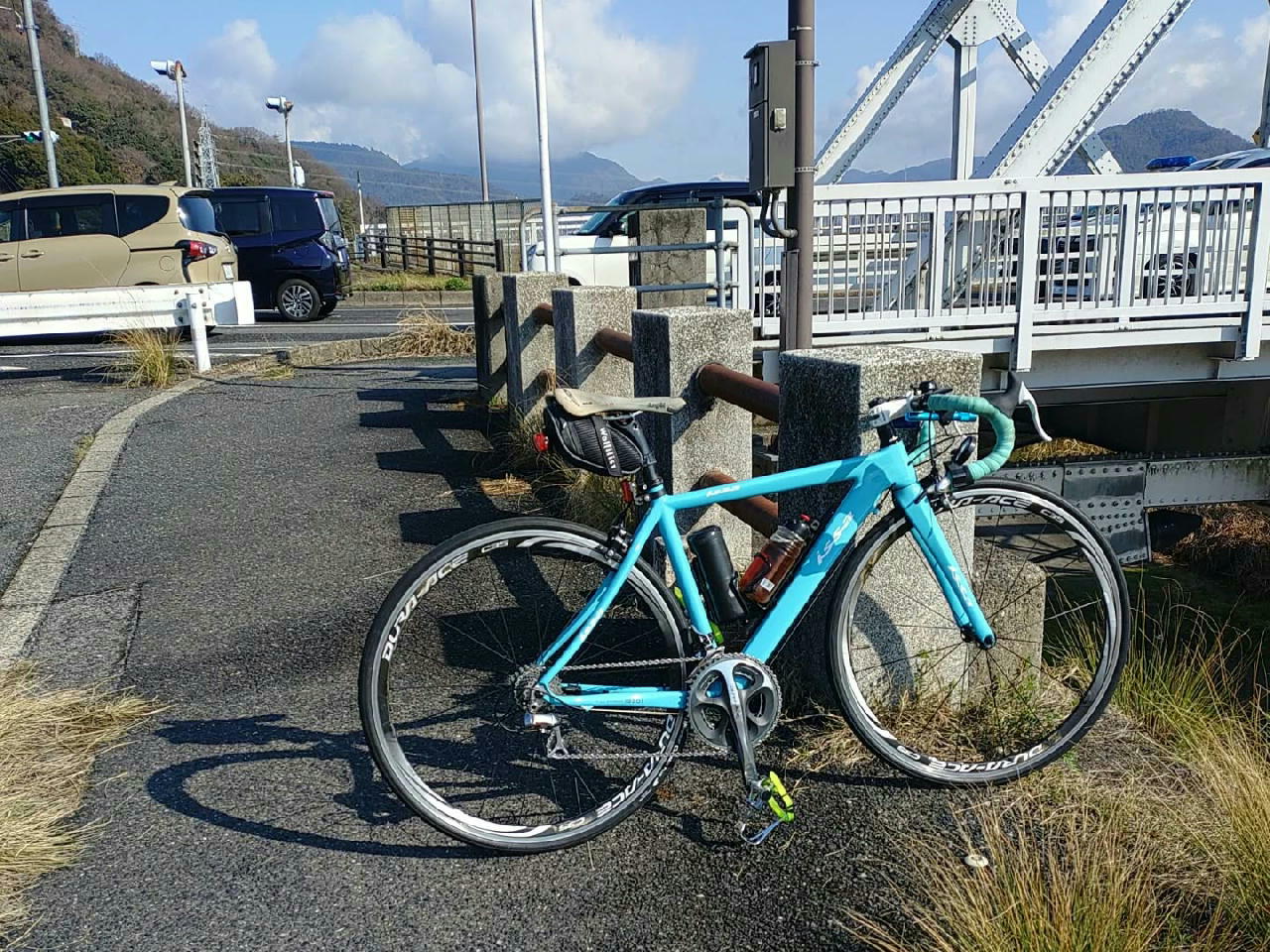 布、飯室、今井田、権現山、尾長山ヒルクライム等、70km、ISSAカーボンロードで走りました。